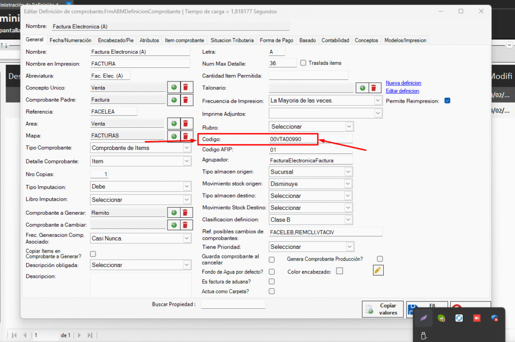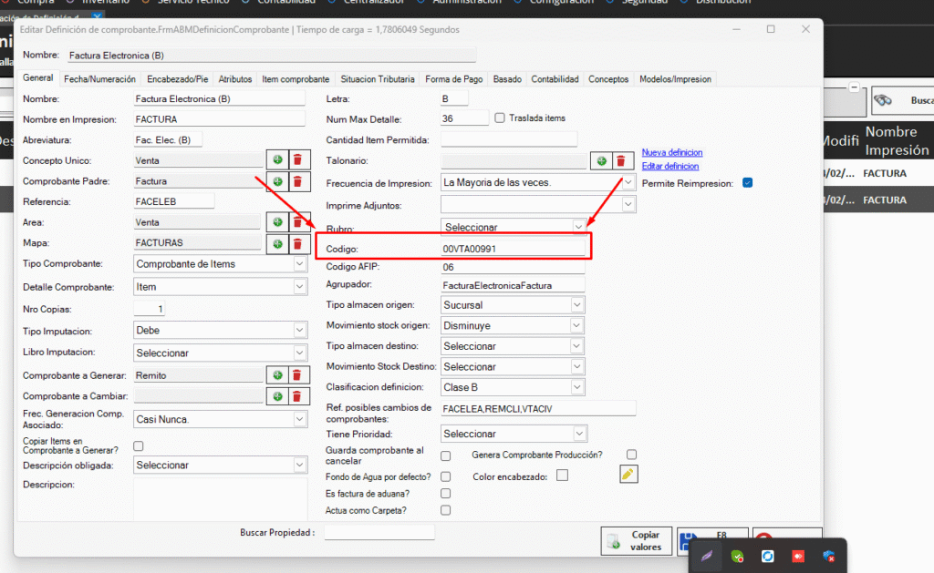Luego, buscamos, por ejemplo, la factura electrónica C y a este código lo pegamos y le colocamos 0. Quedando de este modo: