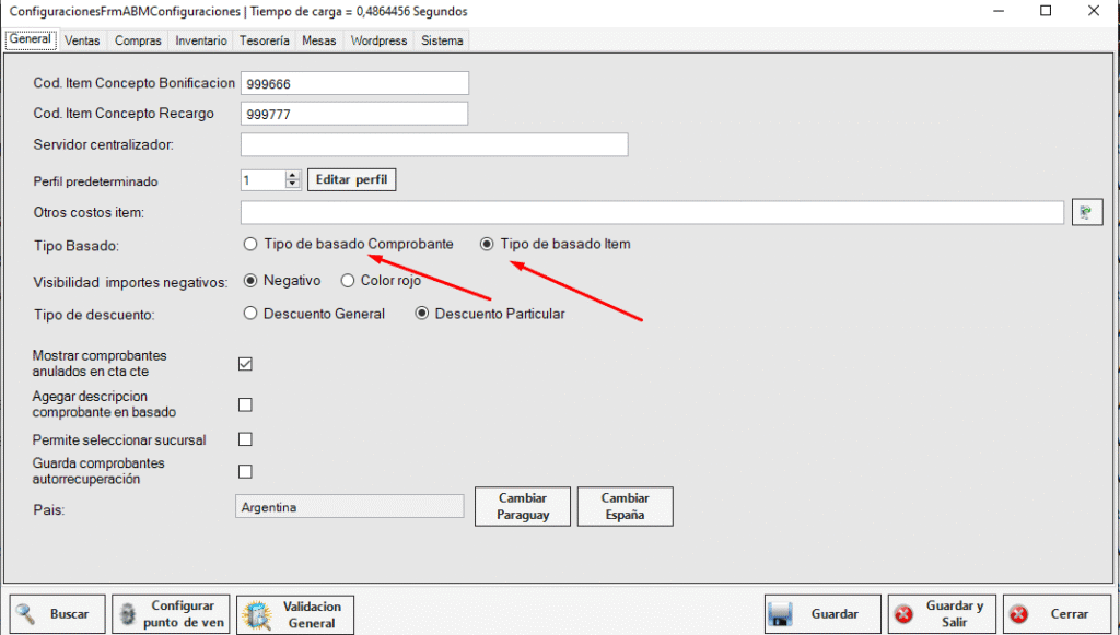 - Debemos tildar la opción «Tipo de basado Comprobante», luego, guardamos. Por último, debemos reiniciar el sistema.