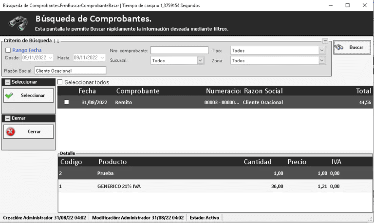 Una vez que lo configuremos el número de comprobante en el basado se muestra de la siguiente manera en el sistema: