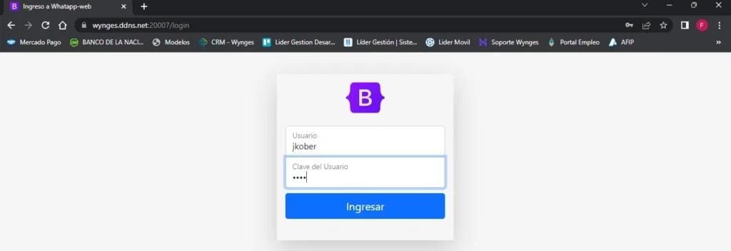 Abrimos el navegador y copiamos el siguiente link : https://wynges.ddns.net:20007/login