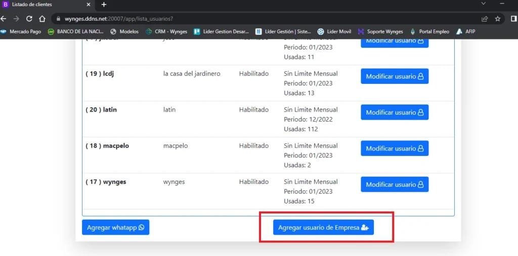usuario: el cuit del cliente y contraseña WhatsAppLider123