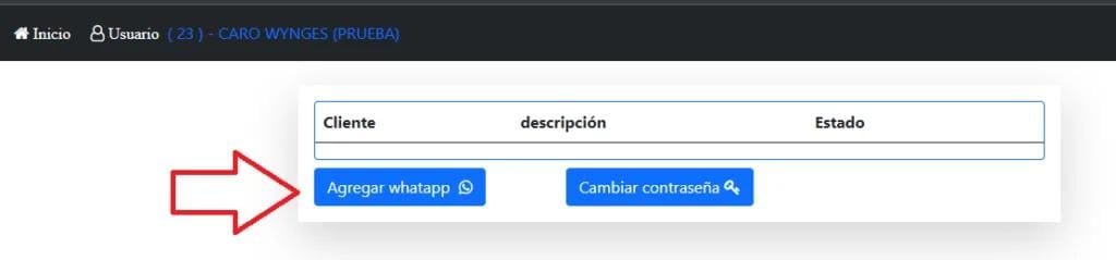 Una vez que ingresemos como USUARIO, Tocaremos el botón agregar Whatsapp