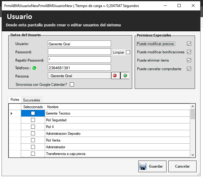 Por ultimo, debemos ingresar en el menú Seguridad y luego en Usuarios. Debemos editar un usuario y colocarle el numero de WhatsApp que van a utilizar.