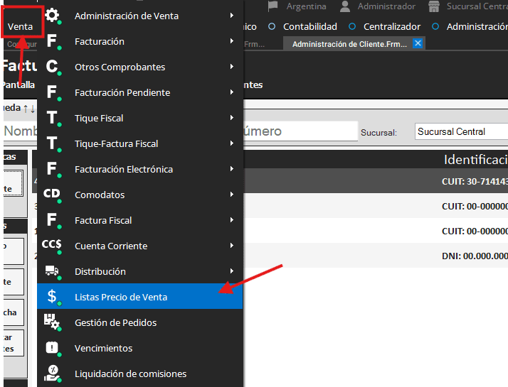 - Nos dirigimos al menú de “Ventas”, buscamos la opción “Lista de precios de venta”.