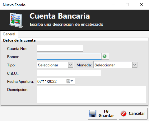 Para crear una nueva cuenta bancaria debemos seleccionar la opción «Nuevo».