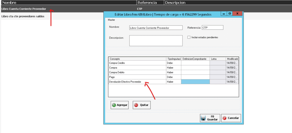 Si algún cliente tiene una diferencia en una cuenta corriente de proveedores deberá ir a Configuración -> Libros y verificar que el libro Cuenta corriente proveedor esté configurado como en esta imagen.