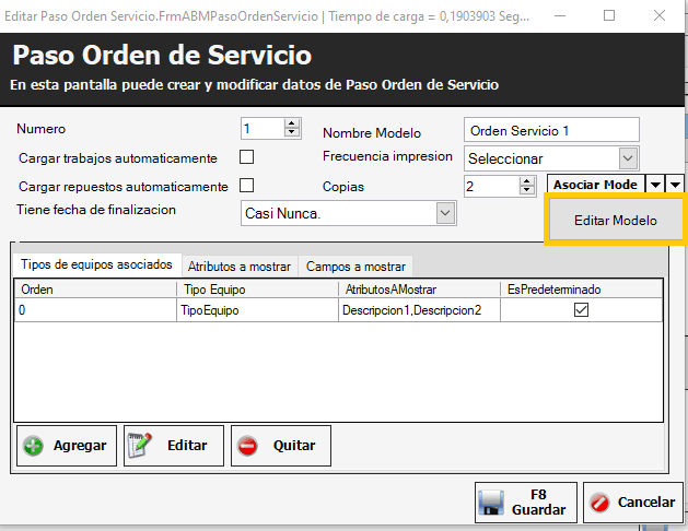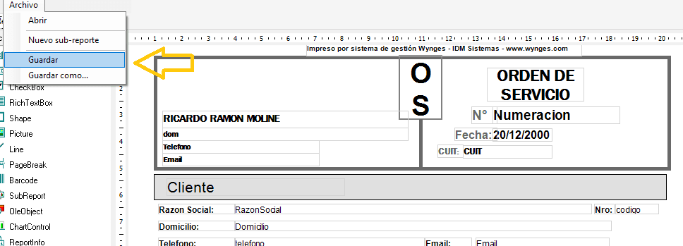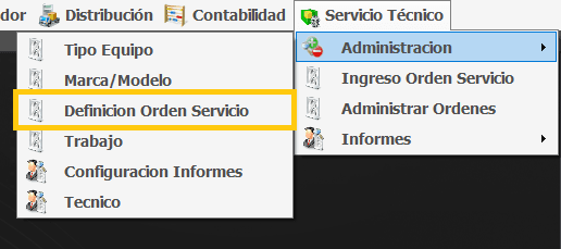 Para editar el modelo de impresión se deberá ir a Servicio Técnico -> Definición Orden Servicio
