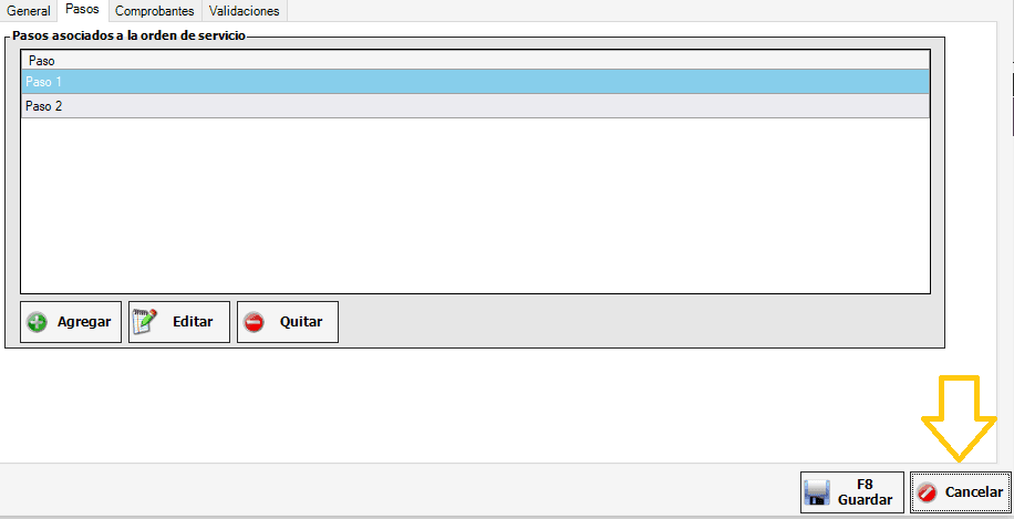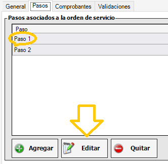 Desde la solapa Pasos seleccionamos Paso 1 y le damos a editar