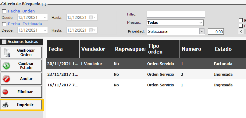 Ahí seleccionamos una orden de servicio y le damos a Imprimir