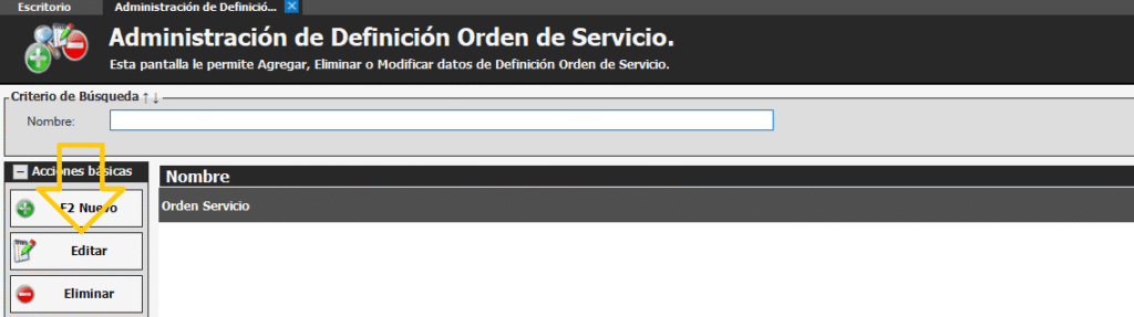 Una vez dentro seleccionamos Orden Servicio y pulsamos el botón Editar