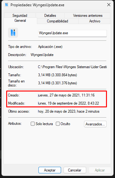 Siempre se debe chequear que al descargar e instalar (el actualizador) lo haya hecho correctamente y en la dirección que corresponde, la manera más sencilla de corroborar esto es ver la fecha del ejecutable dentro de la carpeta de Líder Gestión en Disco C.