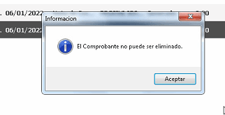 Cuando aparece este mensaje hay que ir a Configuración -> Tipos de Comprobante, seleccionar el tipo que no se puede eliminar, y darle a Editar