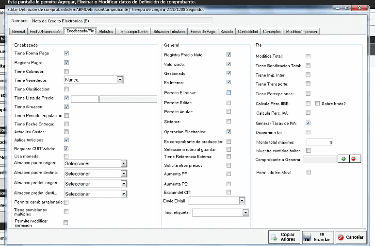 Una vez dentro vamos a la solapa Encabezado/Pie, tildamos la opción Permite Eliminar y le damos a Guardar. Listo, ya podemos eliminar el comprobante