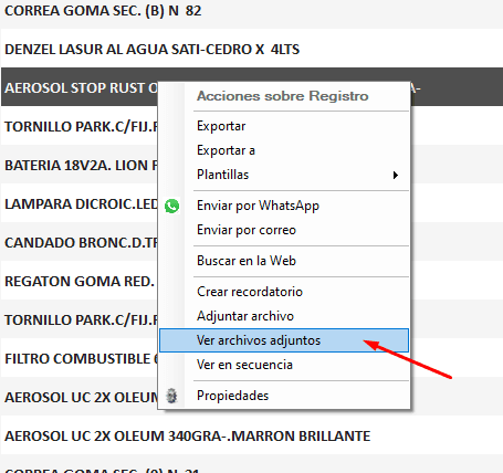 Para ello, nos dirigimos a INVENTARIO->ADMINISTRACION DE INVENTARIO->PRODUCTOS, buscamos el producto que queremos modificar su imagen, hacemos CLICK DERECHO y visualizamos la opción de «Ver archivos adjuntos» y ingresamos en ella.