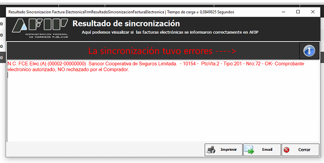 10154 – PtoVtaX – Tipo:201 – Nro:X – OK- Comprobante electrónico autorizado, NO rechazado por el Comprador