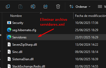 Si arroja ese error al actualizar, debemos borrar el archivo servidores.xml que se encuentra en la carpeta raíz de Wynges. Luego, probamos actualizar nuevamente.