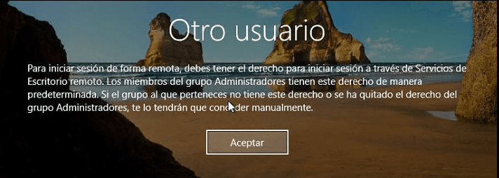 Para iniciar sesión de forma remota, debes tener el derecho para iniciar sesión a través de Servicios de Escritorio remoto. Los miembros del grupo Administradores tienen este derecho de manera predeterminada. Si el grupo al que perteneces no tiene este derecho o se ha quitado el derecho del grupo Administradores, te lo tendrán que conceder manualmente.