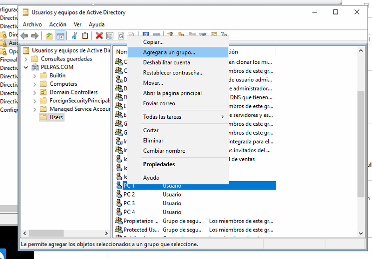 También podemos ir a Usuarios y equipos de Active Directory y añadirle el grupo de Administradores