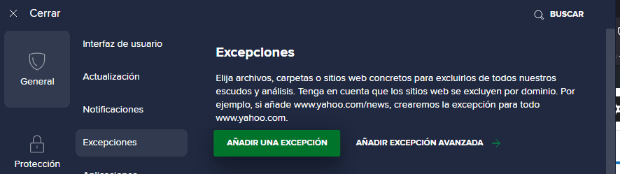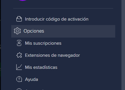 Para habilitarlo desde el antivirus, lo abrimos, seleccionamos el menú y vamos a Opciones
