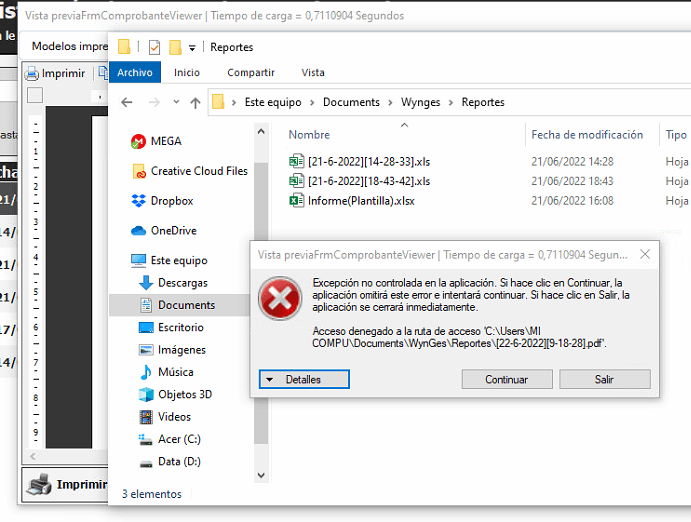 Cuando ocurre esto es posible que sea porque Líder no tiene los permisos sobre esa carpeta o que un antivirus esté bloqueando dicho acceso o la creación del reporte a través del escudo de ransomware.