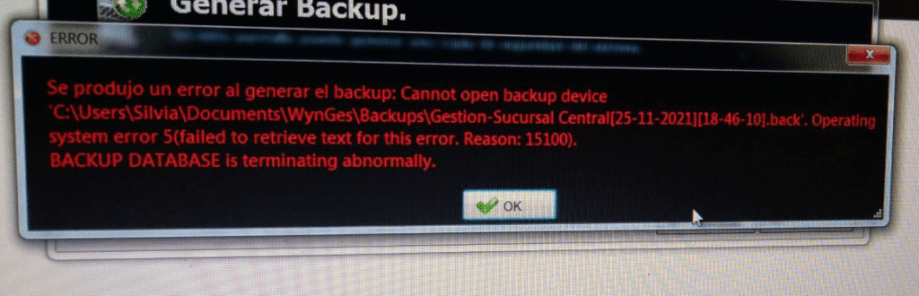 Cuando aparece este error es porque se intenta hacer un backup desde la PC que no es la server.
