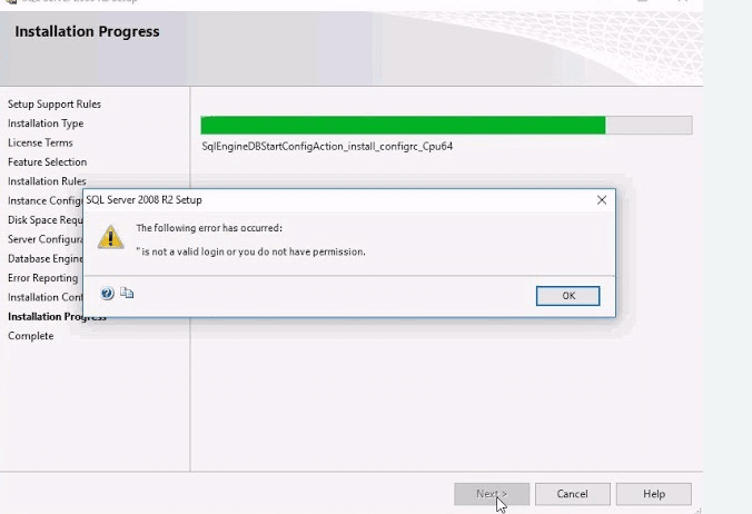 Error al instalar: "The following error has ocurred: "is not a valid login or you do not have permission""