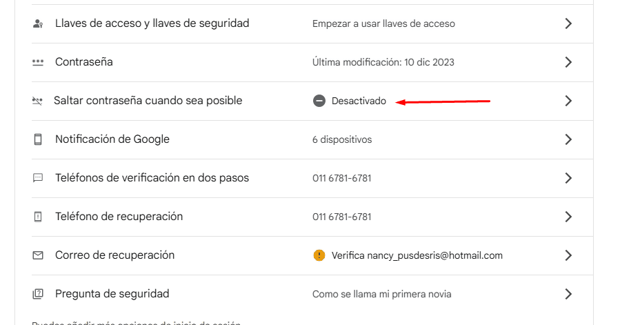 Desde → Gestionar tu cuenta de Google→ Seguridad