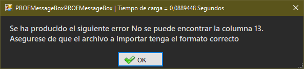 Cuando ocurre este error hay que editar el archivo de Excel y buscar la columna 13 y a esa celda le cargamos un espacio en blanco » «