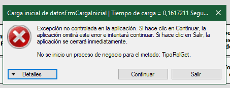 Error en carga inicial: "No se inició un proceso de negocio para el método: TipoRolGet."