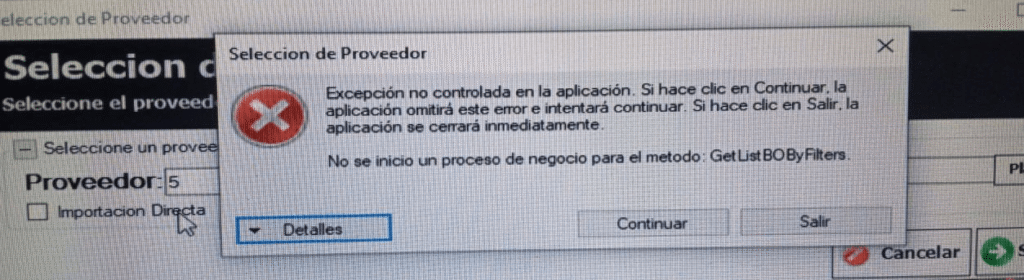 Error en Importador: "No se inicio un proceso de negocio para el metodo: GetListBOByFilters."