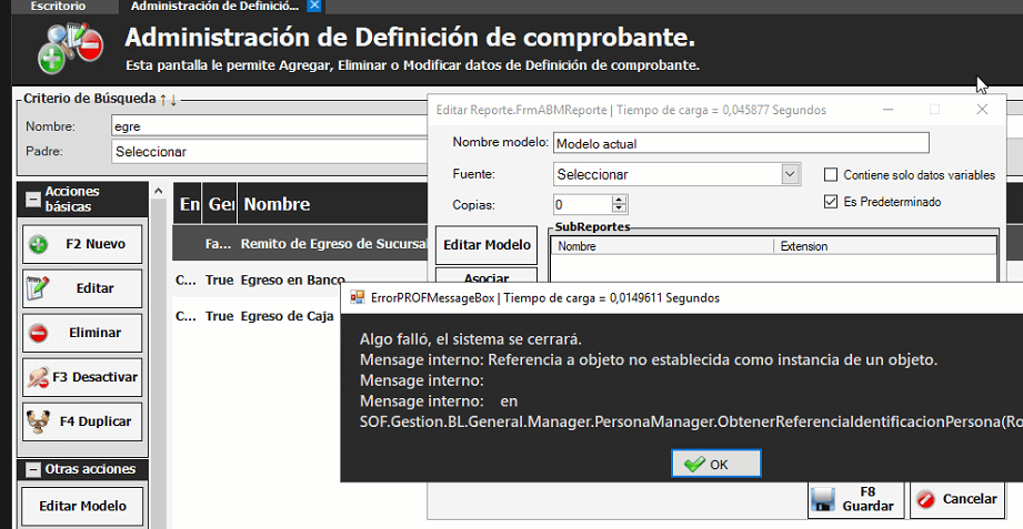 Cuando ocurre esto es porque el archivo de reporte está pidiendo un dato que el tipo de comprobante no se lo da. En el caso de los Remitos de Egreso de Sucursal hay un comprobante en Mensajes Guardados en Telegram o se le puede solicitar al equipo de desarrollo. En la base de datos en blanco a partir de la versión 24.47 debería estar disponible.