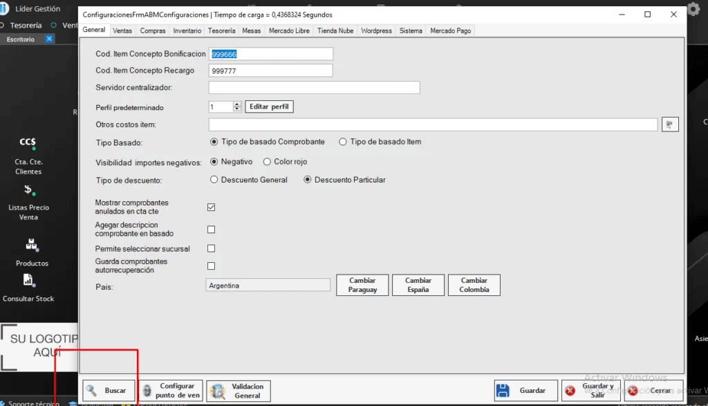 Para que al producto no se le modifique el código de barra una vez guardado debemos realizar lo siguiente: Desde CONFIGURACIÓN – CONFIGURACIÓN GENERAL – BUSCAR