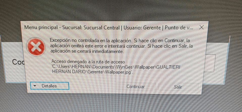Cuando se intenta cambiar o reestablecer el fondo de pantalla y arroje el siguiente error deberá borrar la carpeta de wallpapers alojada en C:Users[usuarioLocal]DocumentsWinGesWallpaper