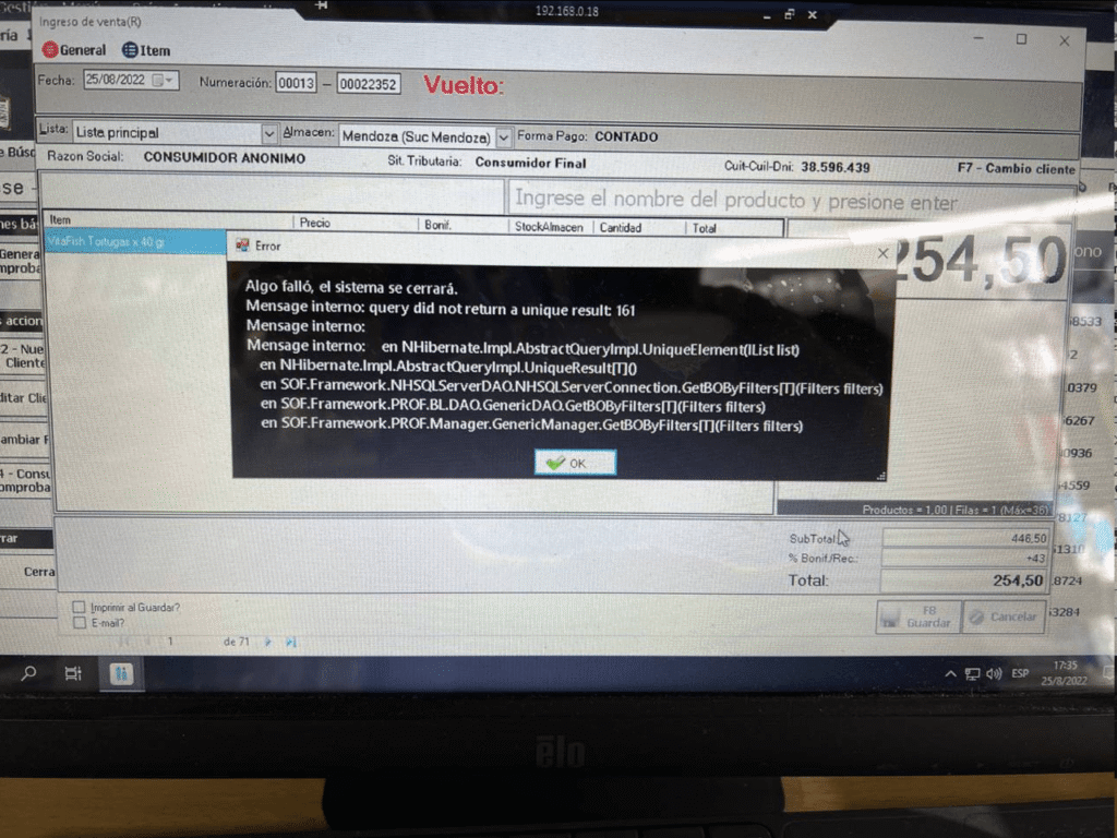 Mensaje interno: en NHibernate.ImplAbsatractQueryImpl.UniqueElement(IList list)