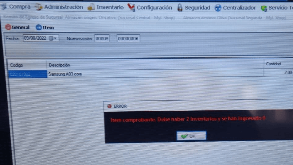Lo mismo en el Remito de ingreso de sucursal en Tipo carga inventario tenga seleccionado seleccionar.