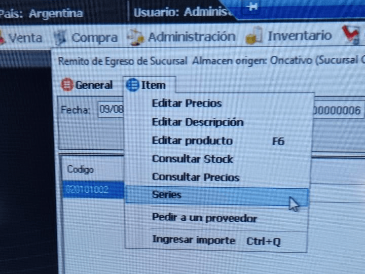 Cuando esto ocurre y en Ítem -> Series, no hace nada, entonces debemos proceder de la siguiente manera: