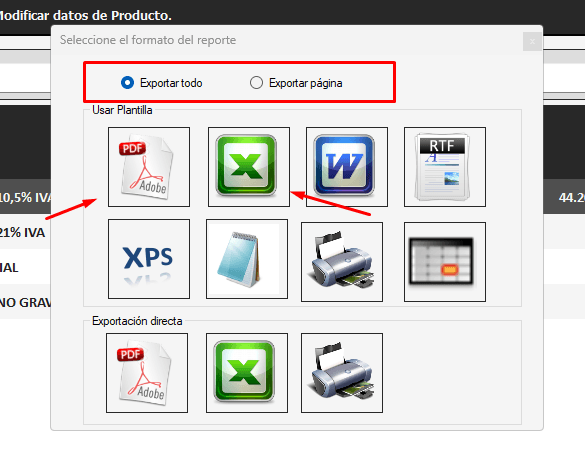 Y puede exportar solo una página o todas las páginas, ya sea en EXCEL, .PDF o el formato que desee