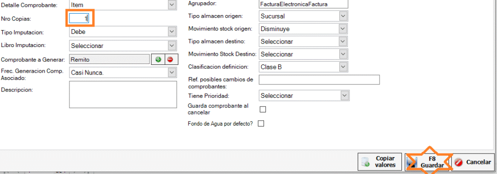 Para poder configurar el tipo de comprante y que cuando imprima el mismo le salga solamente una copia, debemos ir a: