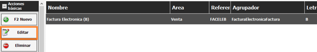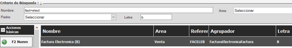 Buscamos el comprobante, en este caso, Factura Electrónica B