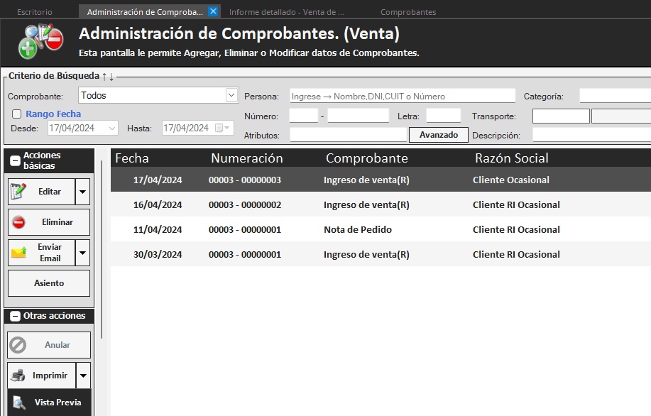Luego, se dirige a la factura que desea guarda en PDF o EXCEL y presiona en el botón VISTA PREVIA.