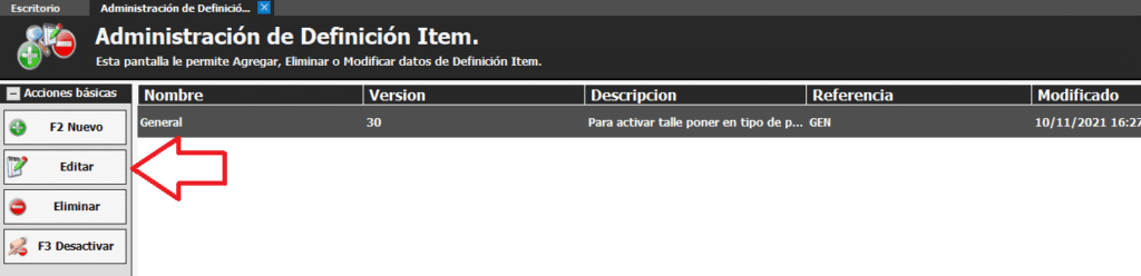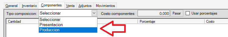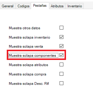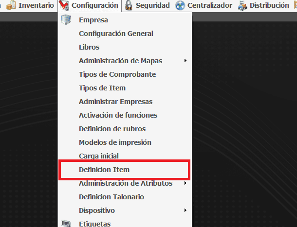 Para habilitar la solapa componentes en los productos debemos ir a Configuración -> Definición de ítem
