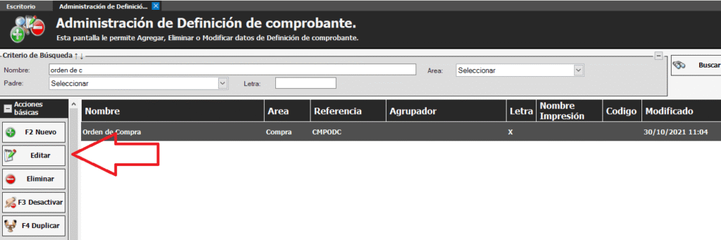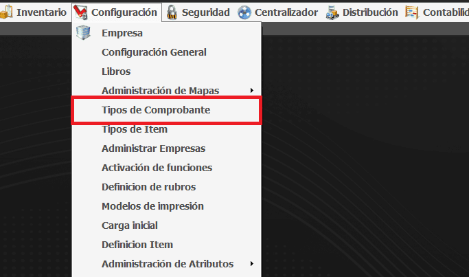Para habilitarle al cliente el comprobante de orden de fabricación debemos ir a Configuración -> Tipos de comprobante.