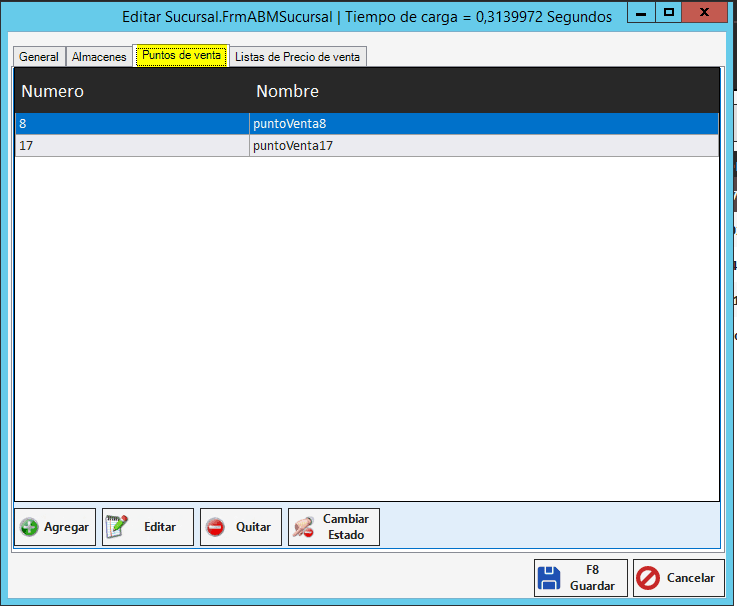 Además, deberemos agregar los datos de Almacenes y de Puntos de Venta, en las pestañas respectivas.
