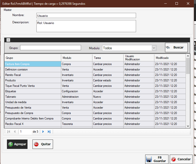 Para habilitar este módulo se deberá ir a Seguridad -> Roles, seleccionar el rol del cliente (Usuario para instalación normal, Electrónica básico para promo) y darle al botón Editar Admin. Una vez ahí le damos a Agregar