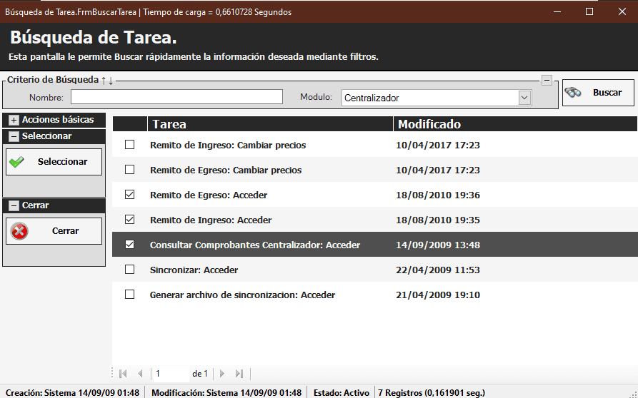 Dentro del módulo Centralizador buscamos y seleccionamos «Remito de Egreso: Acceder», «Remito de Ingreso: Acceder» y «Consultar Comprobantes Centralizador: Acceder», y pulsamos el botón Seleccionar