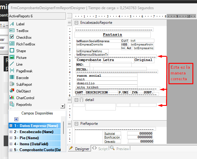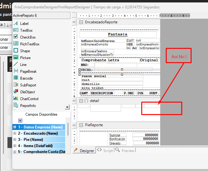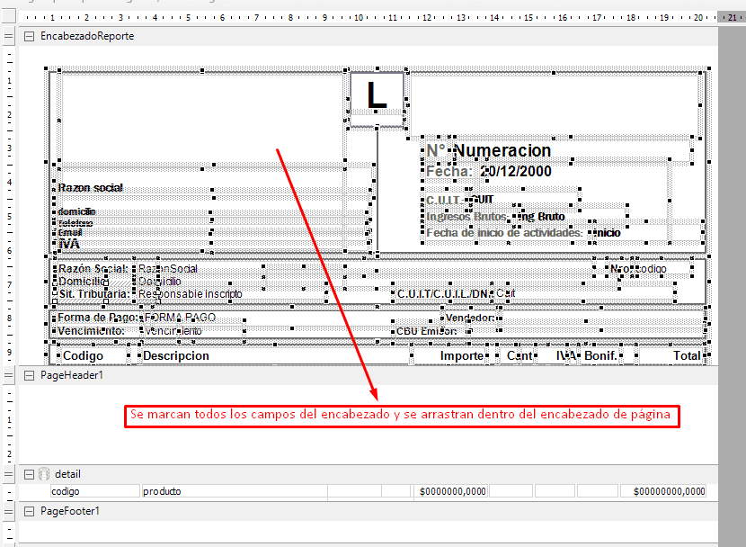 EL primer punto a tener en cuenta es controlar que ninguno de los campos que conforman el comprobante estén por fuera de los márgenes que lo contienen.