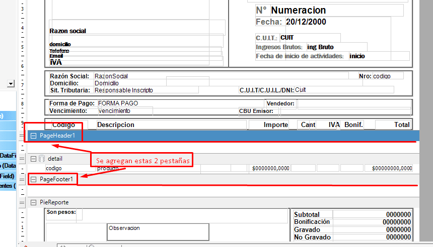 Existe un caso puntual que sucede cuando una hoja de impresión no es suficiente porque la cantidad de items cargados, y el cliente desea que la siguiente hoja a imprimir tenga el mismo encabezado y pie que la primera. En ese caso se realiza lo siguiente: