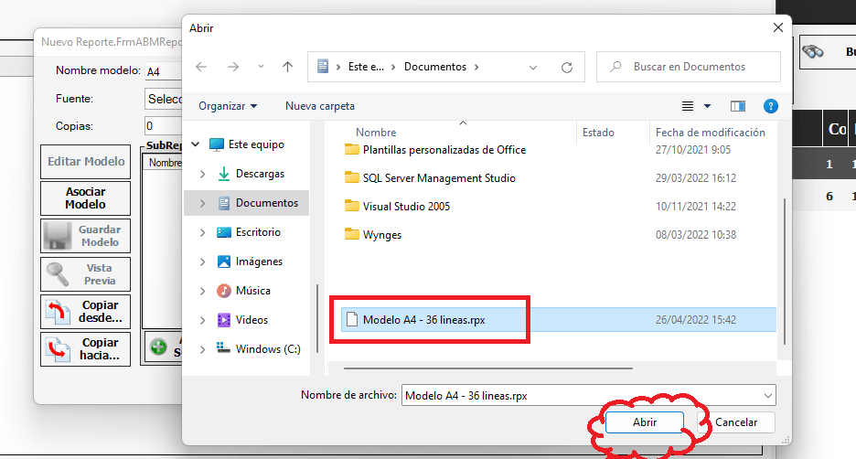 y agregamos el modelo A4 y hacemos click en Abrir…
