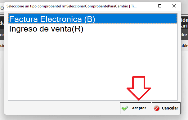 Los comprobantes más utilizados debemos agregarlo, estos son: Facturas Electrónicas (A), (B); Notas Electrónicas de Crédito y Débito y sus equivalentes de los comprobantes internos.