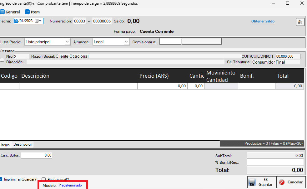 - Venta – Facturación – Facturación electrónica. Luego, presiona en el botón GENERAR COMPROBANTE y debajo del comprobante deberá presionar en predeterminado.